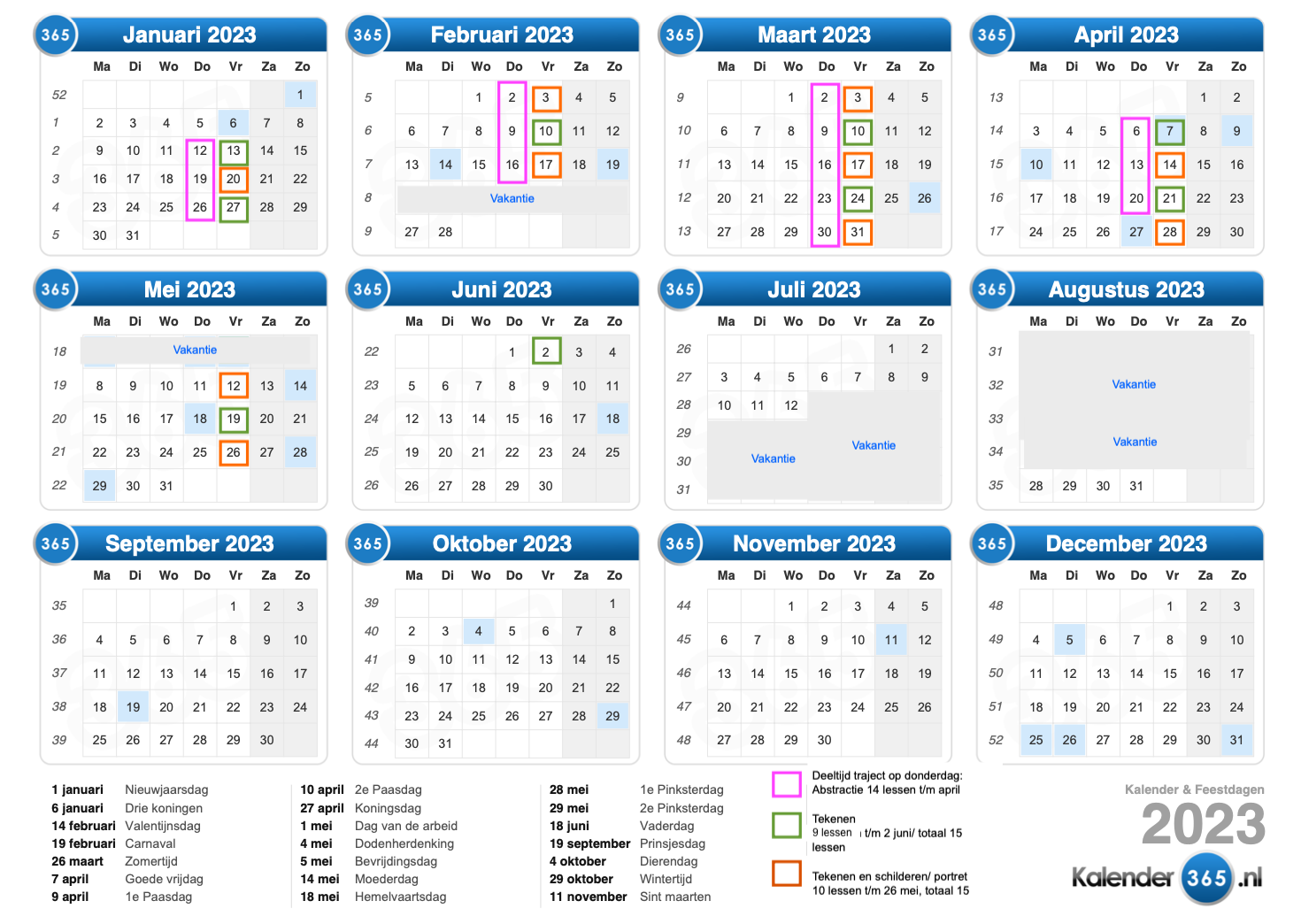 Hieronder zie je de het lesrooster voor het nieuwe seizoen 2023 2024